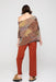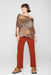 The Jai print is a richly detailed, bohemian inspired design featuring layered fan and paisley motifs arranged in a patchwork style layout. Warm spice, rust and caramel tones are balanced with earthy browns, olive hues and soft touches of teal and ivory, creating depth and visual movement. The intricate pattern feels both artisanal and refined, making the top a standout piece while remaining easy to style with plain pants or skirts.