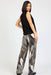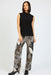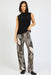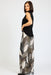 The modern stiple print is a standout feature, showcasing an abstract composition of layered organic shapes, dotted textures, and leaf-inspired patterns. Rendered in versatile neutral tones of black, beige, taupe, and soft ivory, this print offers depth and visual interest while remaining easy to style with classic wardrobe staples. The intricate dot detailing and flowing botanical motifs give a subtle nod to nature, making these printed palazzo pants both timeless and on-trend.